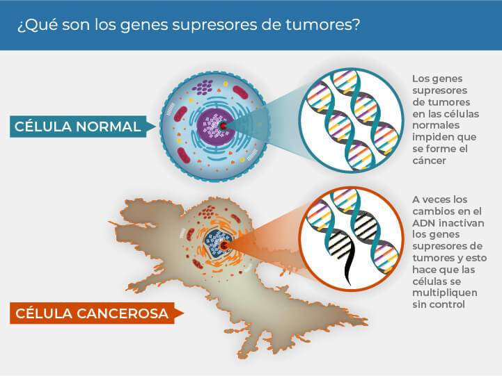 Los genes supresores tumorales también controlan la formación y multiplicación de las células. Las células con ciertos cambios en los genes supresores tumorales podrían multiplicarse sin control.