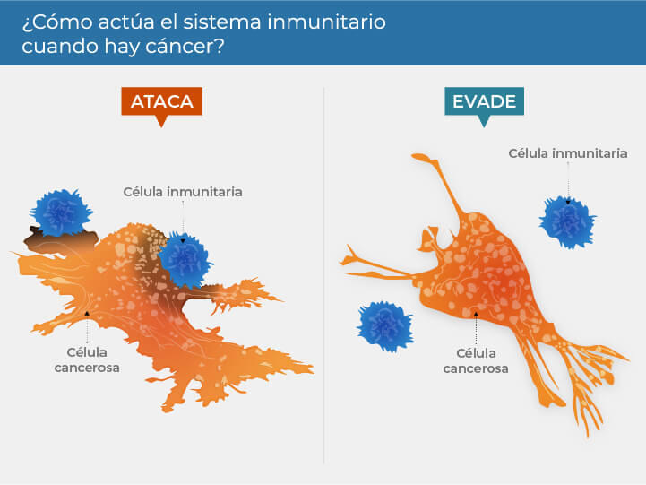 - Las células cancerosas engañan al sistema inmunitario para seguir vivas y multiplicarse. Algunas células cancerosas incluso logran que las células inmunitarias protejan el tumor en vez de atacarlo.
