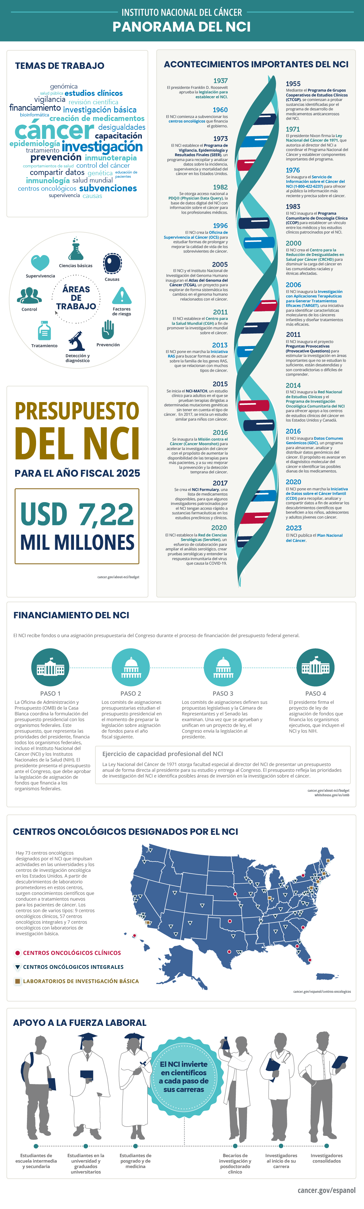- Apoya 73 centros oncológicos designados por el NCI y más de 5000 subvencionados