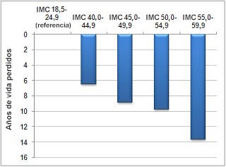 Bibliografía: Kitahara CM, et al. Association between Class III Obesity (BMI of 40–59 kg/m) and Mortality: A Pooled Analysis of 20 Prospective Studies. PLOS Medicine. July 8, 2014. DOI: 10.1371/journal.pmed.1001673.