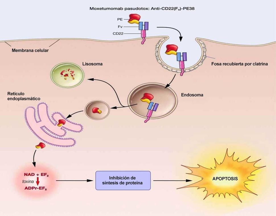 La Administración de Alimentos y Medicamentos (FDA) de los EE. UU. aprobó moxetumomab pasudotox (Lumoxiti), un fármaco basado en una toxina bacteriana, para el tratamiento de algunos pacientes con leucemia de células pilosa (HCL). La aprobación cubre el uso de moxetumomab en pacientes con HCL que ya se han sometido a, al menos, dos líneas de tratamientos convencionales.