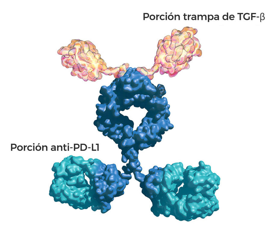 El fármaco, bintrafusp alfa (llamado también M7824), fue diseñado para unirse simultáneamente a dos proteínas (PD-L1 y TGF-beta) que evitan que el sistema inmunitario combata con eficacia las células tumorales.