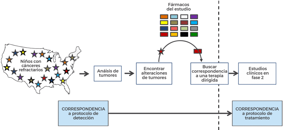 Los pacientes cuyos tumores presenten una alteración genética sobre la que puede actuar un fármaco incluido en el estudio, podrán entonces pasar a la segunda etapa del estudio, en la que se inscribe a los pacientes en el grupo de tratamiento para ese fármaco. En este momento se están probando diez fármacos y se agregarán más a medida que avance el estudio.