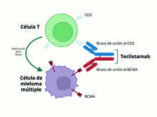 En un estudio clínico pequeño, desaparecieron todos los signos de cáncer en más del 40 % de las personas con mieloma múltiple que recibieron el medicamento de inmunoterapia teclistamab (Tecvayli). Los participantes en el estudio tenían mieloma múltiple que no respondió o volvió después de tres tratamientos anteriores.
