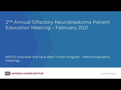 To learn more about olfactory neuroblastoma, watch the videos below of recorded Patient Education Meetings hosted by Dr. Nyall London from the National Institute on Deafness and Other Communication Disorders (NIDCD) Sinonasal and Skull Base Tumors Program, which feature experts on olfactory neuroblastoma.