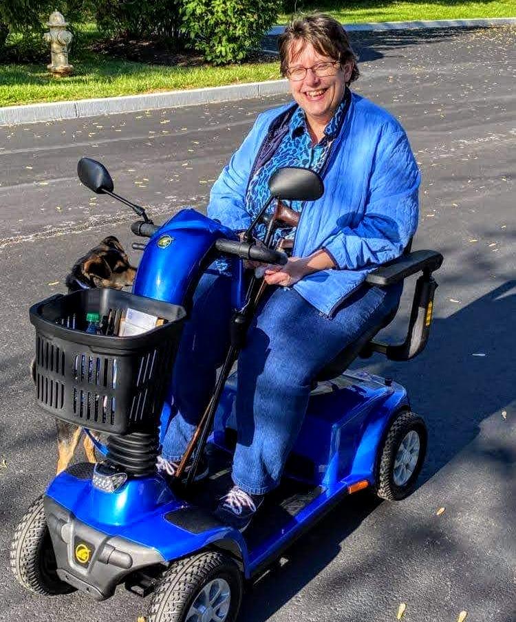 A second surgery in 2012 and a third in 2015 followed. I gradually lost sensation in my feet and legs. Strength, balance, and bladder control failed. I needed a cane, then a walker, then an electric scooter.