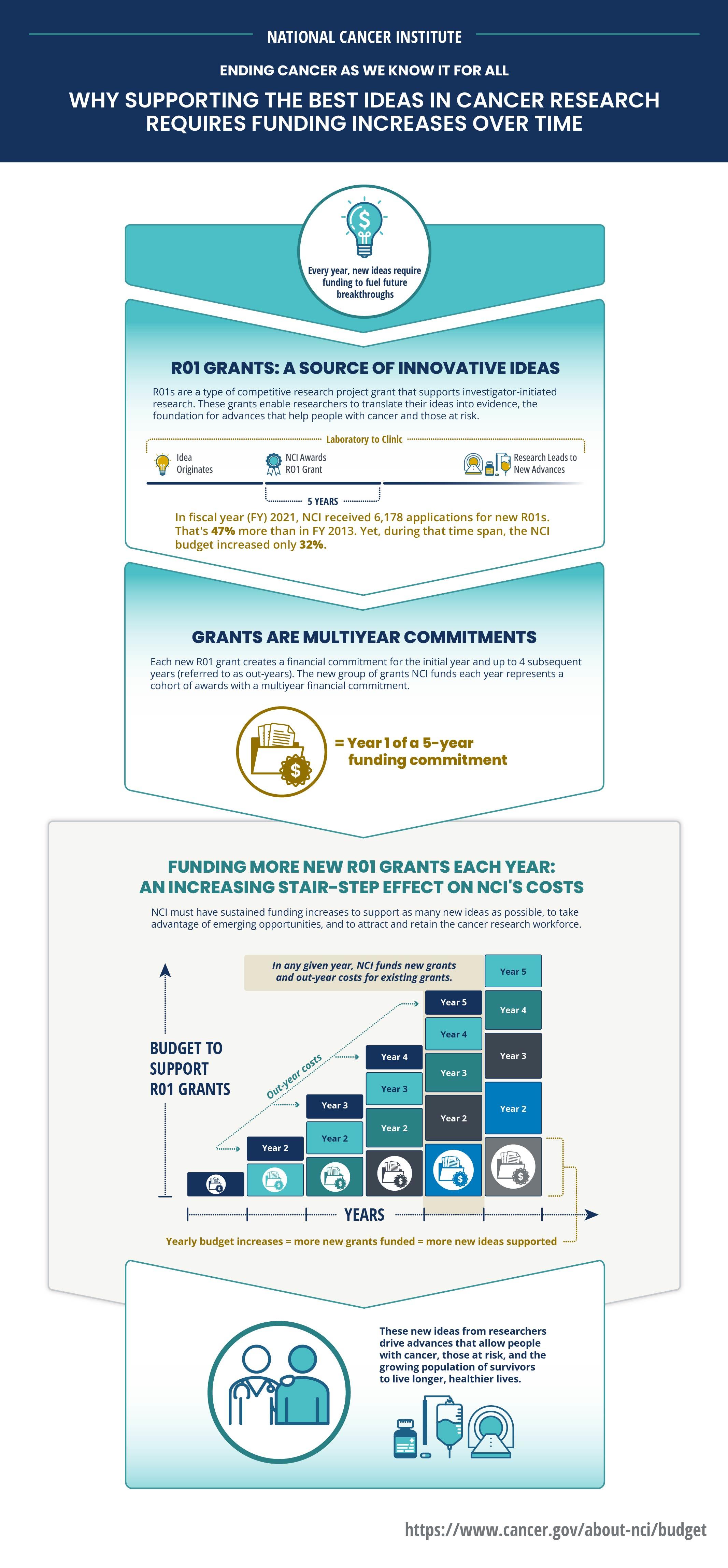 If you would like to reproduce some or all of this content, see Reuse of NCI Information for guidance about copyright and permissions. In the case of permitted digital reproduction, please credit the National Cancer Institute as the source and link to the original NCI product using the original product's title; e.g., “Annual Plan Fiscal Year 2024 Budget Infographic was originally published by the National Cancer Institute.”
